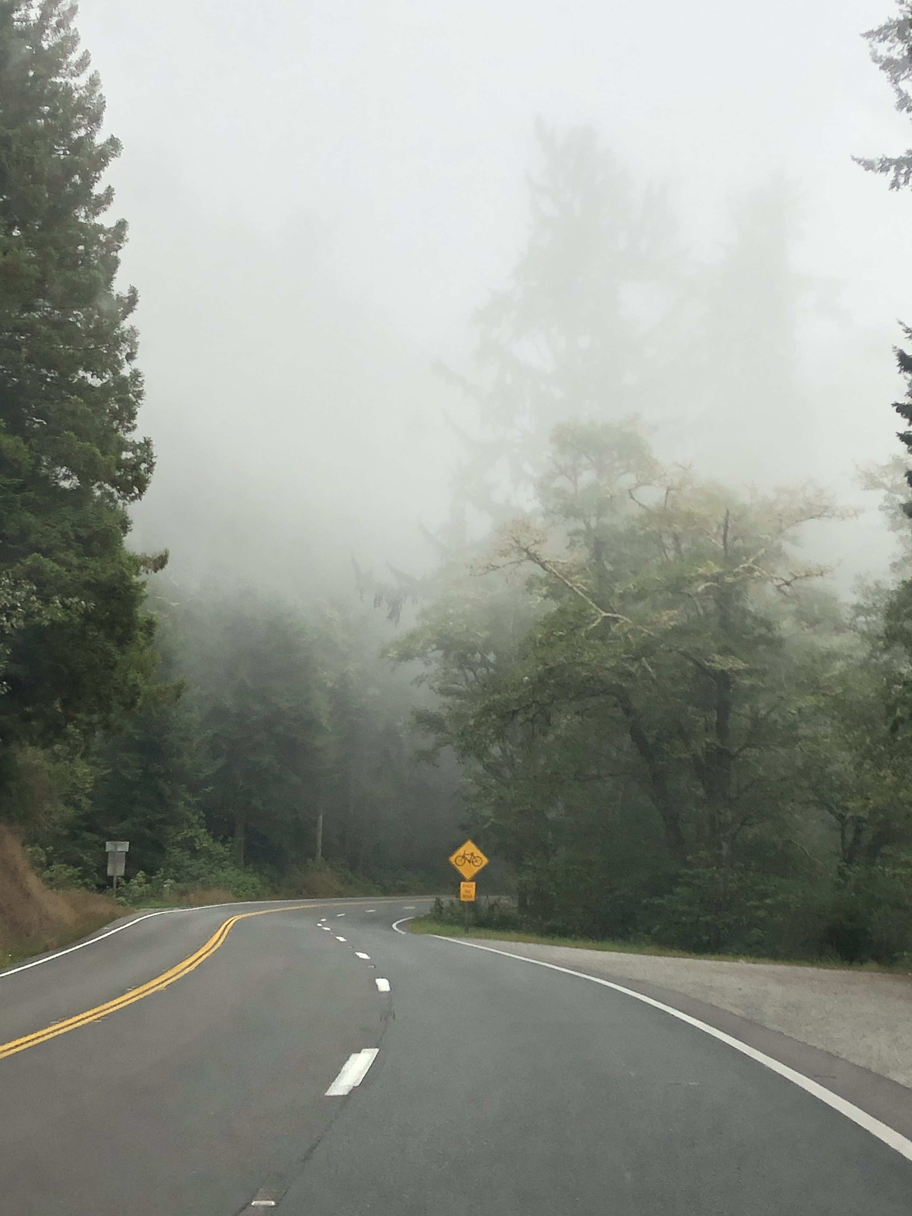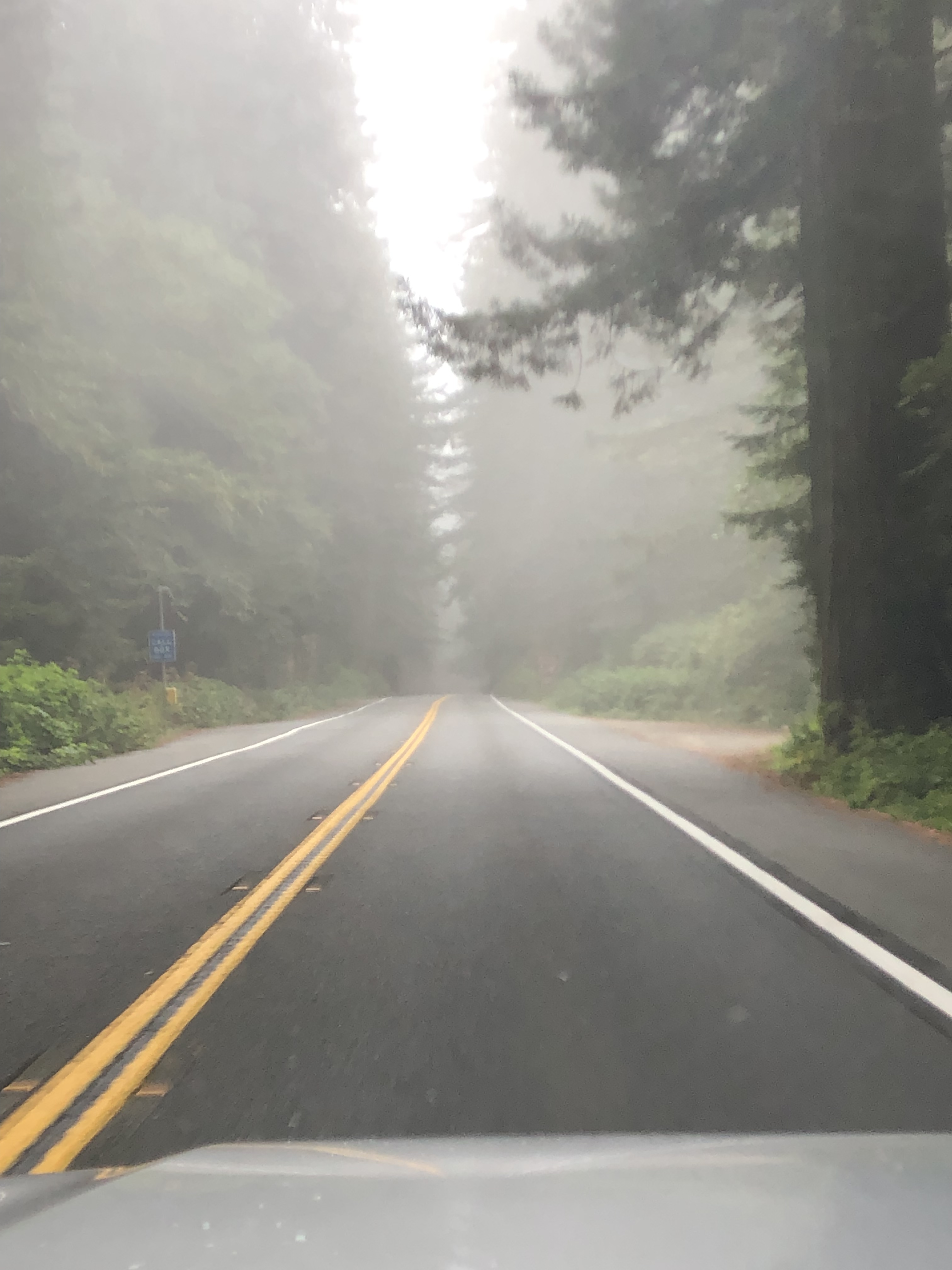 – Crossed into California and drove through Redwood National Forest (majestic) and saw attractions that I had not planned for timing wise but wanted to stop to see (I missed a cool Big Foot attraction and zip line ride because I drove too fast past them and then couldn’t turn around). I DID stop in Leggett, CA and went to and thru the Drive Thru Tree. Didn’t know this was a thing when I planned my drive, but thought I should be making more unplanned stops to add flavor to the journey versus sticking to a strict schedule.