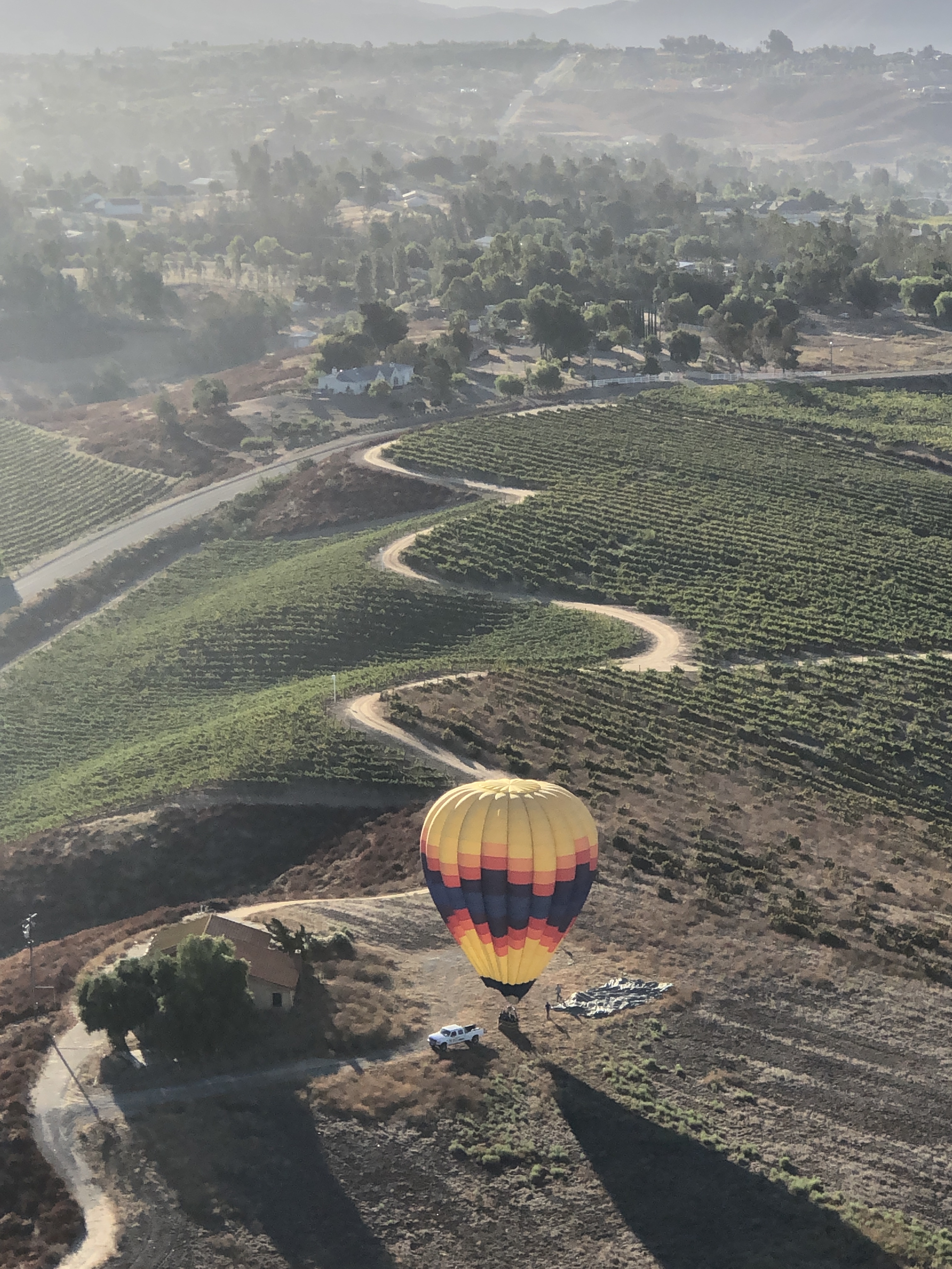 – Left Los Angeles at 2 am to drive to Temecula, CA to take a sunrise hot air balloon ride, which was my third bucket list item that I was able to check off on this trip. It was so much fun and was peaceful just floating over vineyards and watching the sunrise. A couple in the next balloon got engaged, which, yay for them. #blankstare. I was perfectly happy being alone. #surejan. The very nice proprietors provided fresh baked bread, cheese, fruit and champagne when we returned from our flight. It was a great experience.