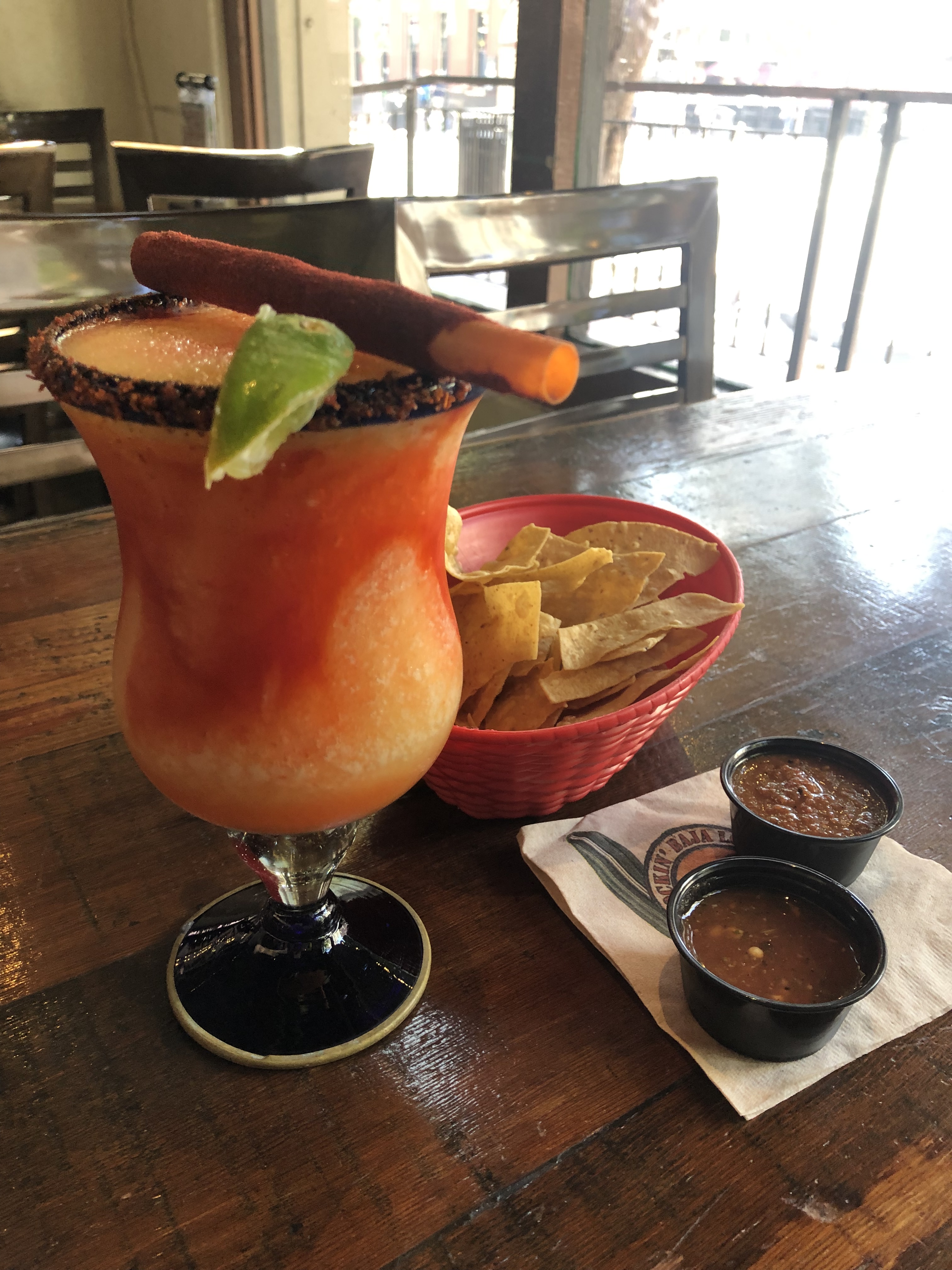 – Had late lunch at Rockin Baja Lobster in the Gaslamp Quarter- I mention this because I had a GREAT Chamangorita (frozen swirled mango Rita with chamoy sauce in a chili rimmed glass with chamoy candy stick).